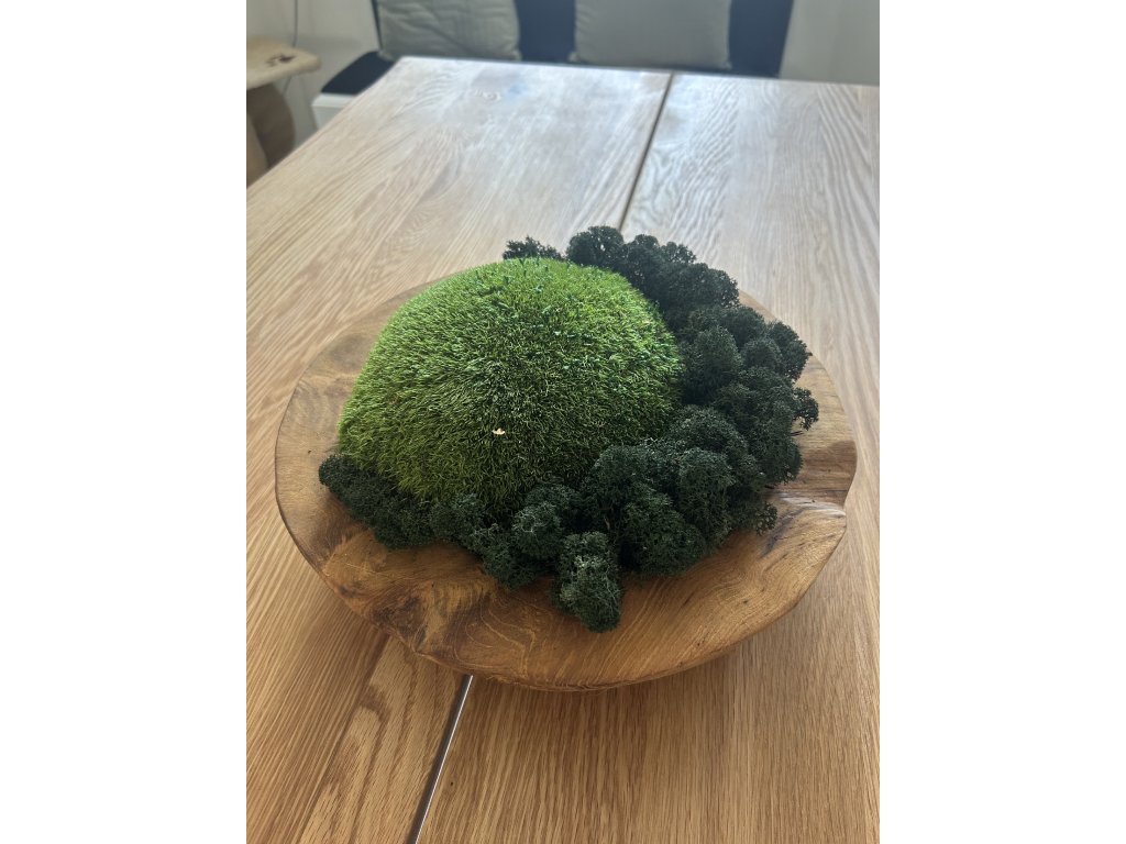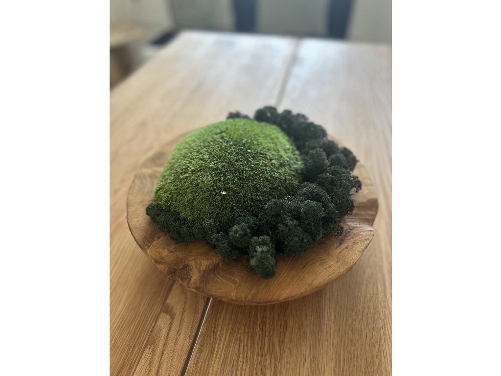 Mísa plná přirody v relaxující zelené barvě. vyrobený ze stabilizovaného mechu Mísa z pravého dřeva kombinovaná se stabilizovaným mechem - sobím a kopečkovým.