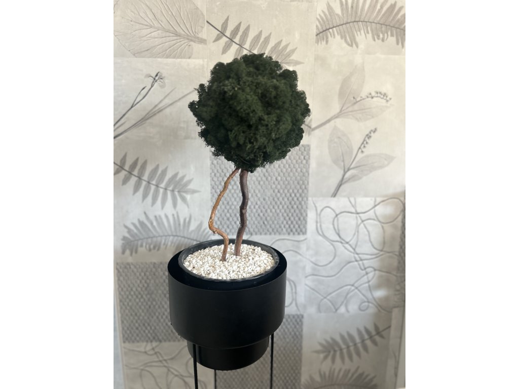 Květináč plný přirody v relaxující zelené barvě. vyrobený ze stabilizovaného mechu, doplněný bílými kamínky.